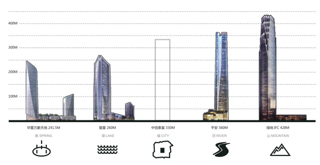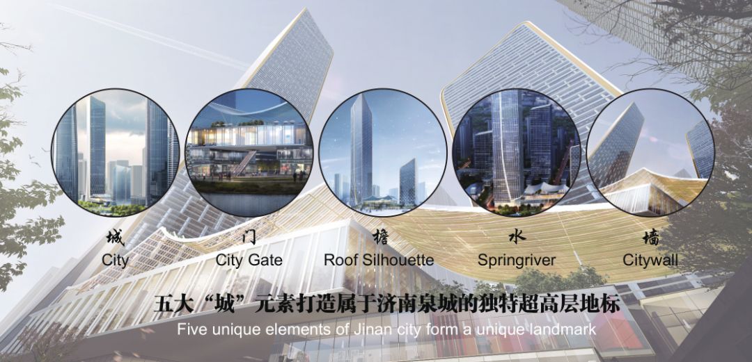 济南CBD规划了象征“山、泉、湖、河、城”元素的五座超高层塔楼,其中“山、泉、湖、河”的设计方案已经确定,只有“城”的设计方案尚未亮相。