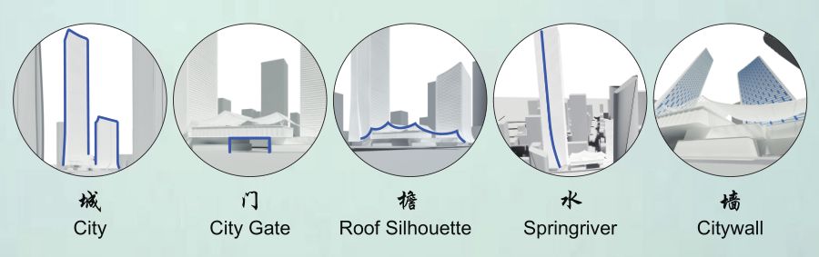 “城”的建筑方案注重建筑立面刻画,延续济南水与城的特色,将水的流动和城墙的厚重运用于立面形式,形成“刚柔相济、阴阳相生”的立面效果,与《指导意见》要求相吻合。